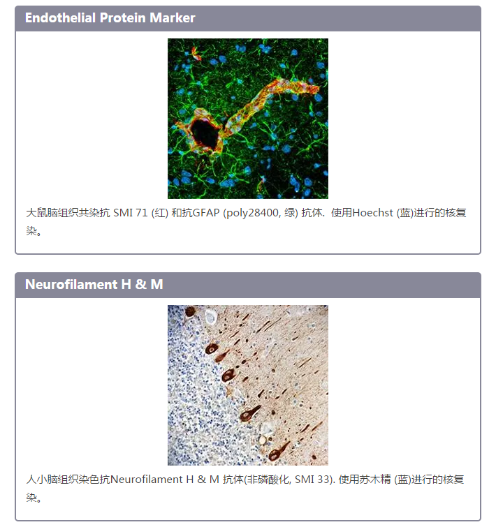 SMI?克隆號系列抗體是BioLegend 旗下品牌 Covance非常重要而知名的產(chǎn)品線,被業(yè)內(nèi)譽為研究神經(jīng)細(xì)胞特異marker的金標(biāo)準(zhǔn)。
