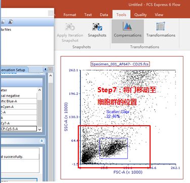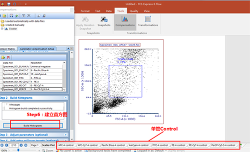 依次調(diào)整好各單管Control的Marker門(mén)的位置。此處不一一列舉?;氐窖a(bǔ)償界面。此處的3、4適用于使用補(bǔ)償beads調(diào)節(jié)補(bǔ)償?shù)那闆r(由于本次數(shù)據(jù)為細(xì)胞,此處不詳細(xì)列出,如對(duì)此步驟感興趣,可咨詢(xún)小達(dá)君)