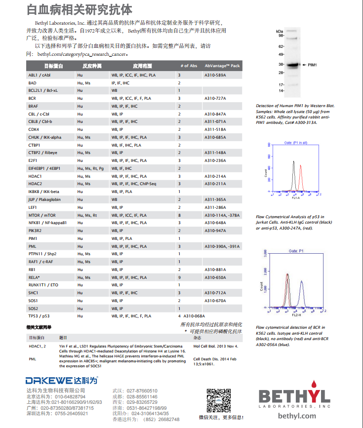 【重磅】Bethyl Laboratories擁有超過135個(gè)抗體可用于白血病的研究