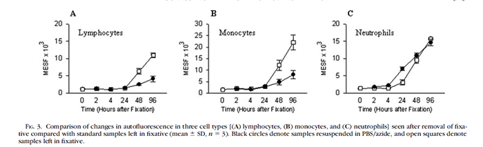Judith C. Stewart, Michelle L. Villasmil andMark W. Frampton. Changes in Fluorescence Intensity of Selected LeukocyteSurface Markers Following Fixation. Cytometry A. 2007 Jun;71(6):379-85.