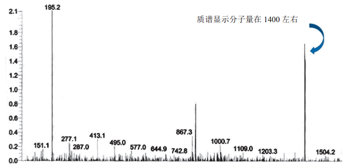 圖4. ND4的質譜圖譜,顯示分子量在1400左右。
