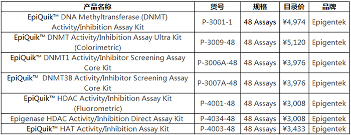 Epigentek還為您提供表觀遺傳相關(guān)的DNMT, HDAC和HAT核提取物檢測(cè)試劑盒。