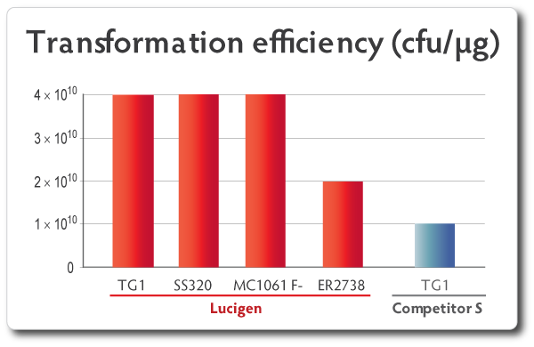 E. cloni? 10G ELITE電轉(zhuǎn)感受態(tài)轉(zhuǎn)化效率≧2×1010 cfu/μg,E. cloni? 10G化學(xué)轉(zhuǎn)感受態(tài)轉(zhuǎn)化效率≧1×109 cfu/μg;