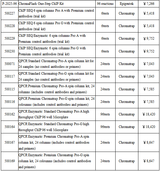 ChIP相關(guān)產(chǎn)品列表: